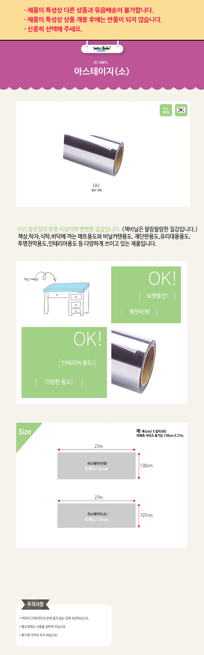 107cm*45M/0.13mm/1롤